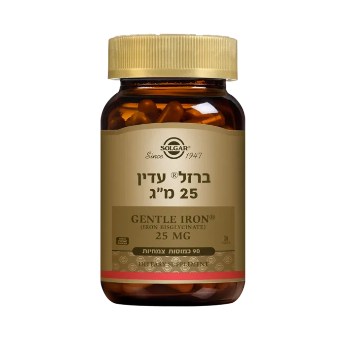 ברזל עדין של חברת סולגאר הוא אחד מתוספי הברזל הפופולריים והיעילים ביותר כיום, במיוחד עבור מי שמתקשה עם תוספים סטנדרטיים שגורמים לתופעות לוואי במערכת העיכול. המוצר מבית חברת Solgar האמריקאית הוותיקה והאמינה מציע פורמולה מתקדמת מסוג Iron Bisglycinate – צורת ברזל קלת עיכול הנספגת היטב בגוף מבלי לגרום לגירויים בקיבה.
