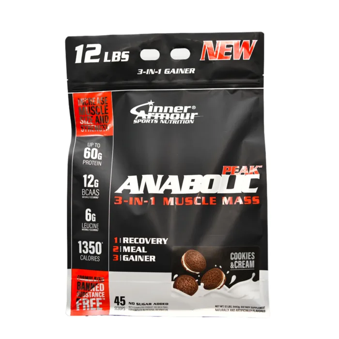 אבקת הגיינר INNER ARMOUR PEAK ANABOLIC של חברת אינר ארמור האמריקאית פותחה במיוחד לכל מי שמתקשה לעלות במשקל ורוצה להוסיף קלוריות איכותיות לתפריט שלו בעזרת גיינרים לעליה במסה.