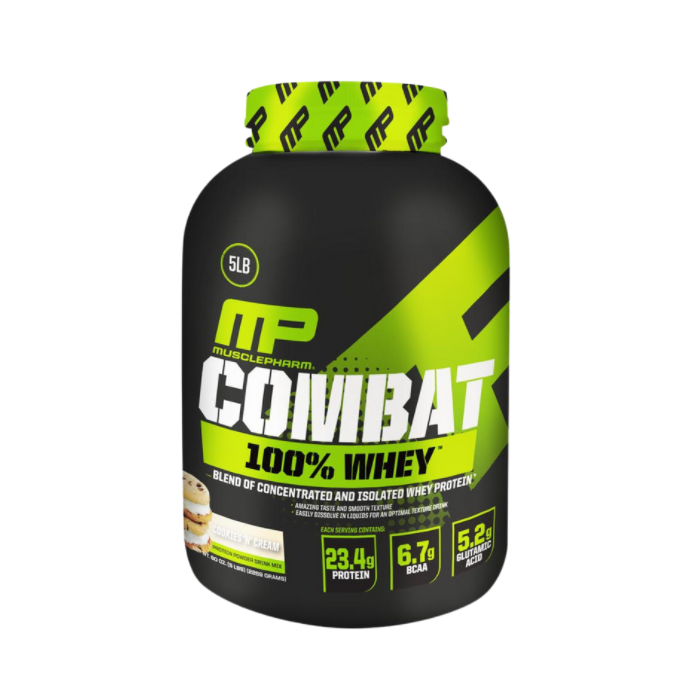 אבקת החלבון מאסל פארם קומבט של ענקית תוספי התזונה Muscle Pharm מכילה 100% חלבון מי גבינה טהור ואיכותי במיוחד שנספג בגוף בצורה מהירה על מנת לתת מענה איכותי לספורטאים  אחרי אימון.
