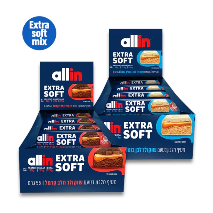 חטיף חלבון אול אין אקסטרה סופט מבצע זוגות 36 יח׳ חטיף חלבון פרוטאין מקס 24 יח׳ חטיפי חלבון מקס ברנר 12 י״ח