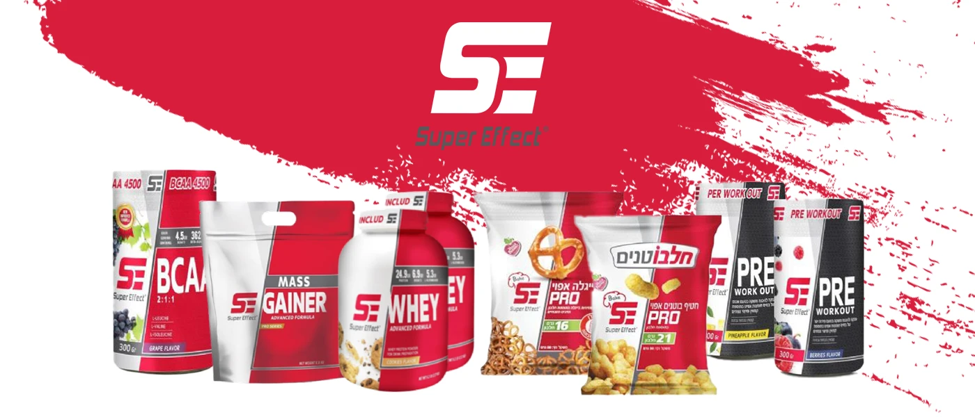 סופר אפקט | Super Effect הוא מותג ישראלי מוביל בתחום תוספי התזונה לספורטאים, מתאמנים וחובבי אורח חיים בריא. עם מגוון רחב של מוצרים איכותיים, סופר אפקט מציעה פתרונות