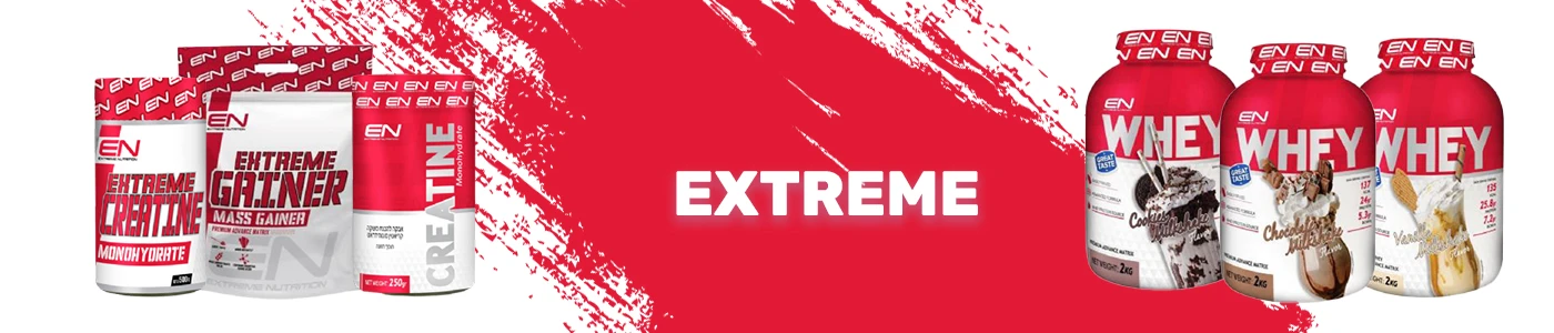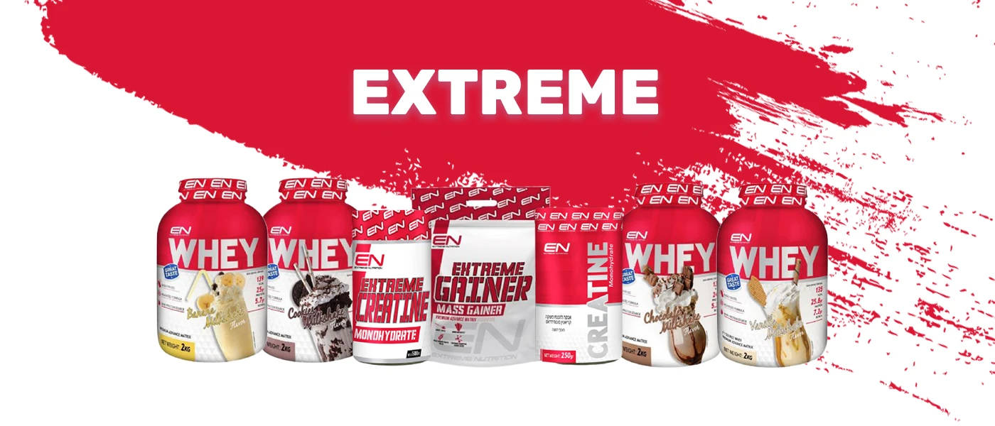 הכירו את המותג אקסטרים | Extreme – הבחירה המושלמת למי שמחפש את התוצאות המהירות ביותר. גיינרים, אבקות חלבון וקריאטין ברמה הגבוהה ביותר, המאפשרים לכם להעלות את ביצועיכם ולבנות את הגוף שתמיד רציתם.