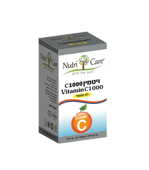 ויטמין C של חברת Nutri Care הוא תוסף תזונה המיועד לספק כמות גבוהה ומרוכזת של ויטמין C בכל טבליה, כאשר כל יחידה מכילה 1000 מ"ג. התוסף מיוצר בצורת ויטמין C לא חומצי, לרוב מסוג אסקורבט, שמטרתו להפחית את העומס על הקיבה ולאפשר ספיגה נוחה יותר בהשוואה לחומצה אסקורבית רגילה. מאפיין זה הופך את המוצר למתאים במיוחד למי שמתקשה עם תוספי ויטמין C חומציים או רגישים יותר במערכת העיכול.